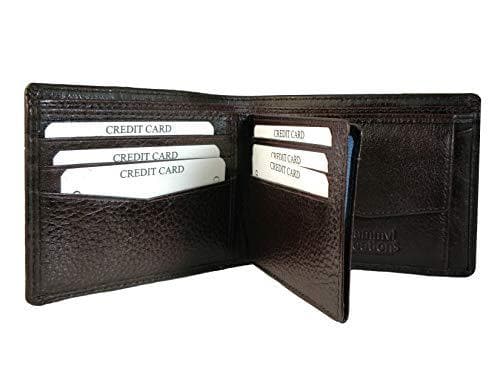 - Length of the wallet is 4 inches & width is 3.8 inches and is loaded with 6 card slots spacious enough to fit all kinds of credit,debit and miscellaneous cards.Two secret slots provided.* 3 spacious photo id slots provided.