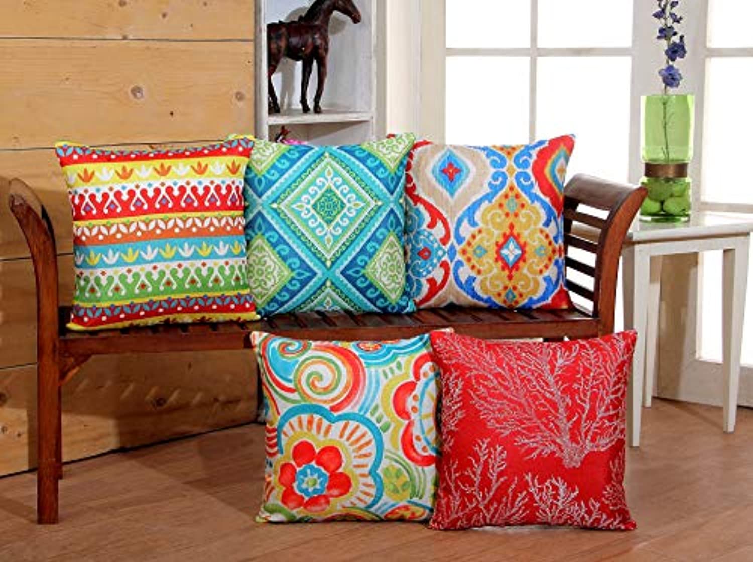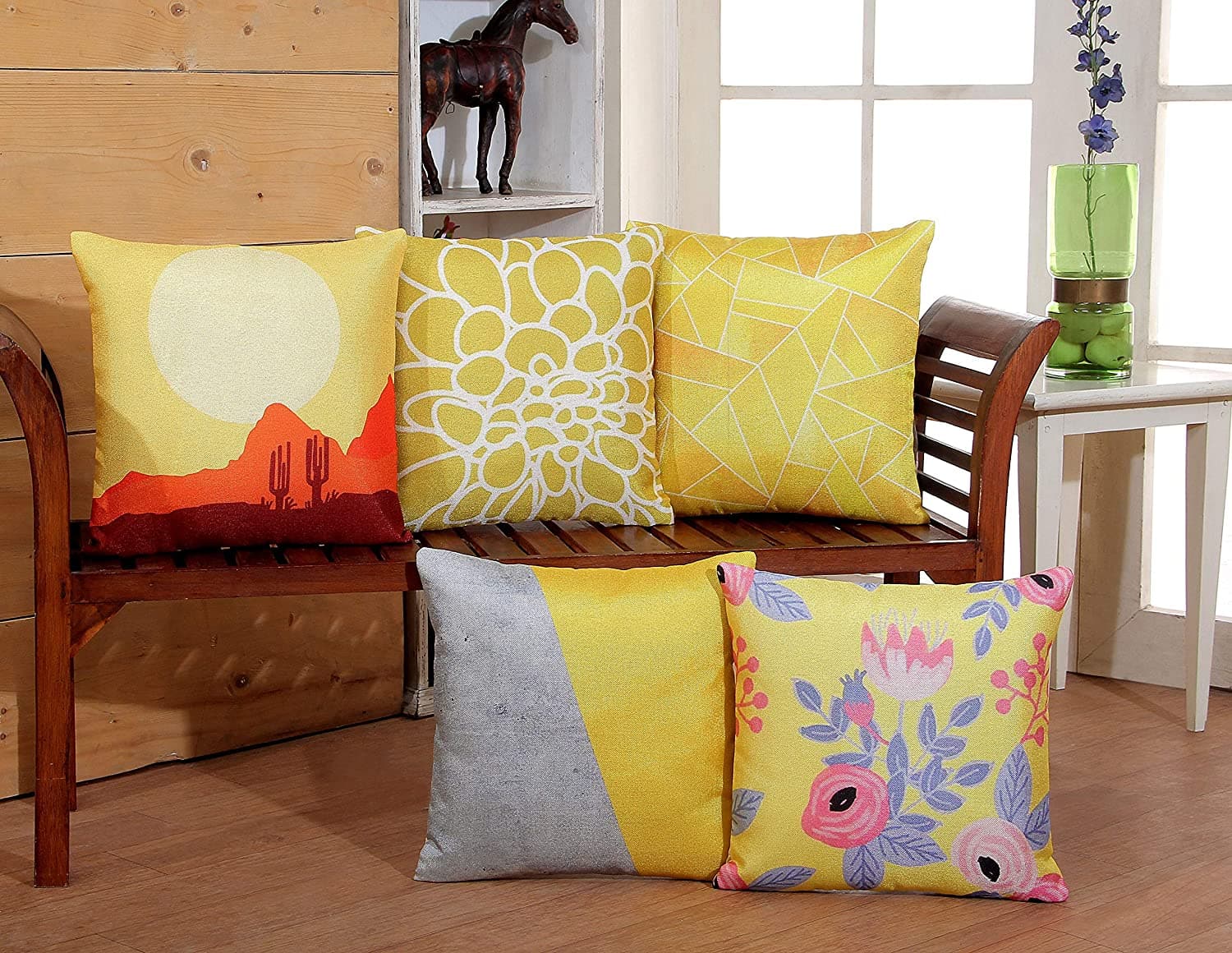 Gift set contents: Set of 5 cushion cover, Zip Closer without filler. Size Cushion Cover Size - 16x16 inch, Material - Jute