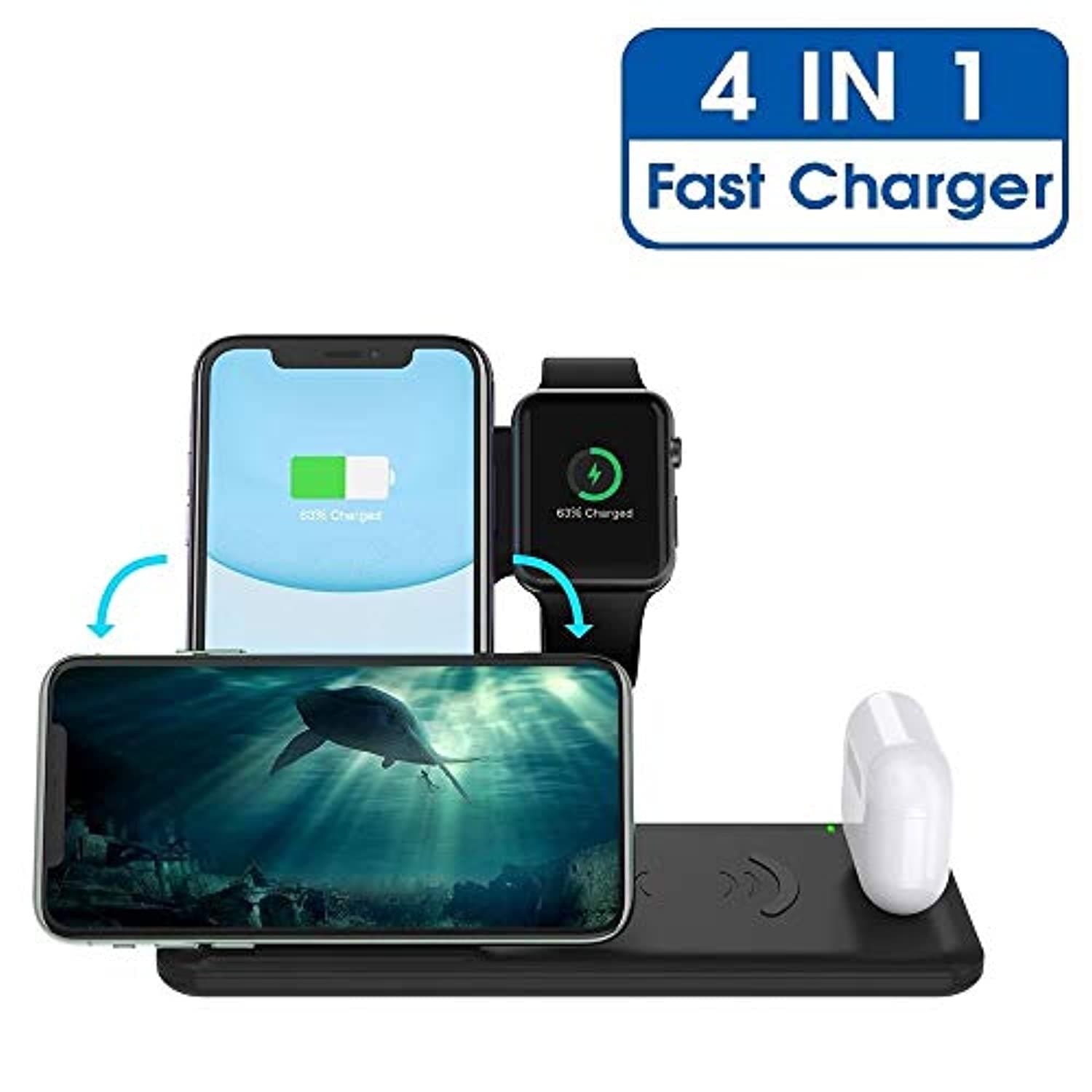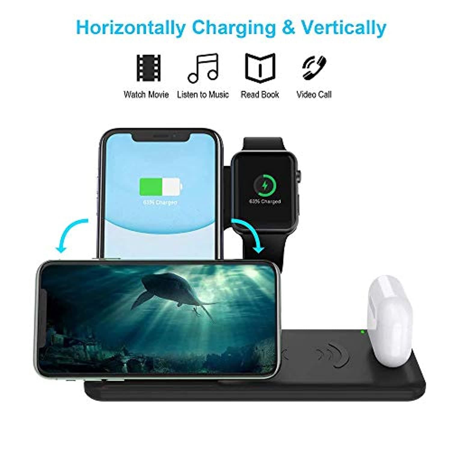 4 IN 1 WIRELESS CHARGER: (ADAPTER IS NOT INCLUDED IN THE PACKAGE)The wireless charger can charge for mobile phone, apple watch and Airpods. It's suitable for Apple AirPods 1/2/AirPods Pro/Xiaomi Airdots Youth Edition headphones, some TWS Bluetooth headsets and Apple Watch Series 5/4/3/2/1. Support for hybrid charging between Apple and Android.(Note: When charging the phone, earphone, watch together, must use a 12V/2A or 9V/2.7A adapter.
