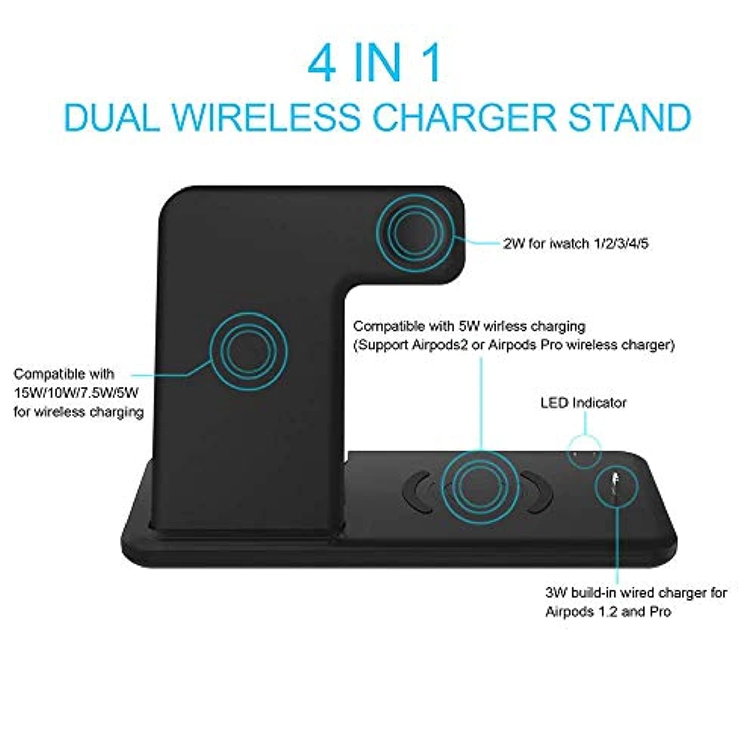 4 in 1 Qi-Certified Wireless 15W Fast Charger Station