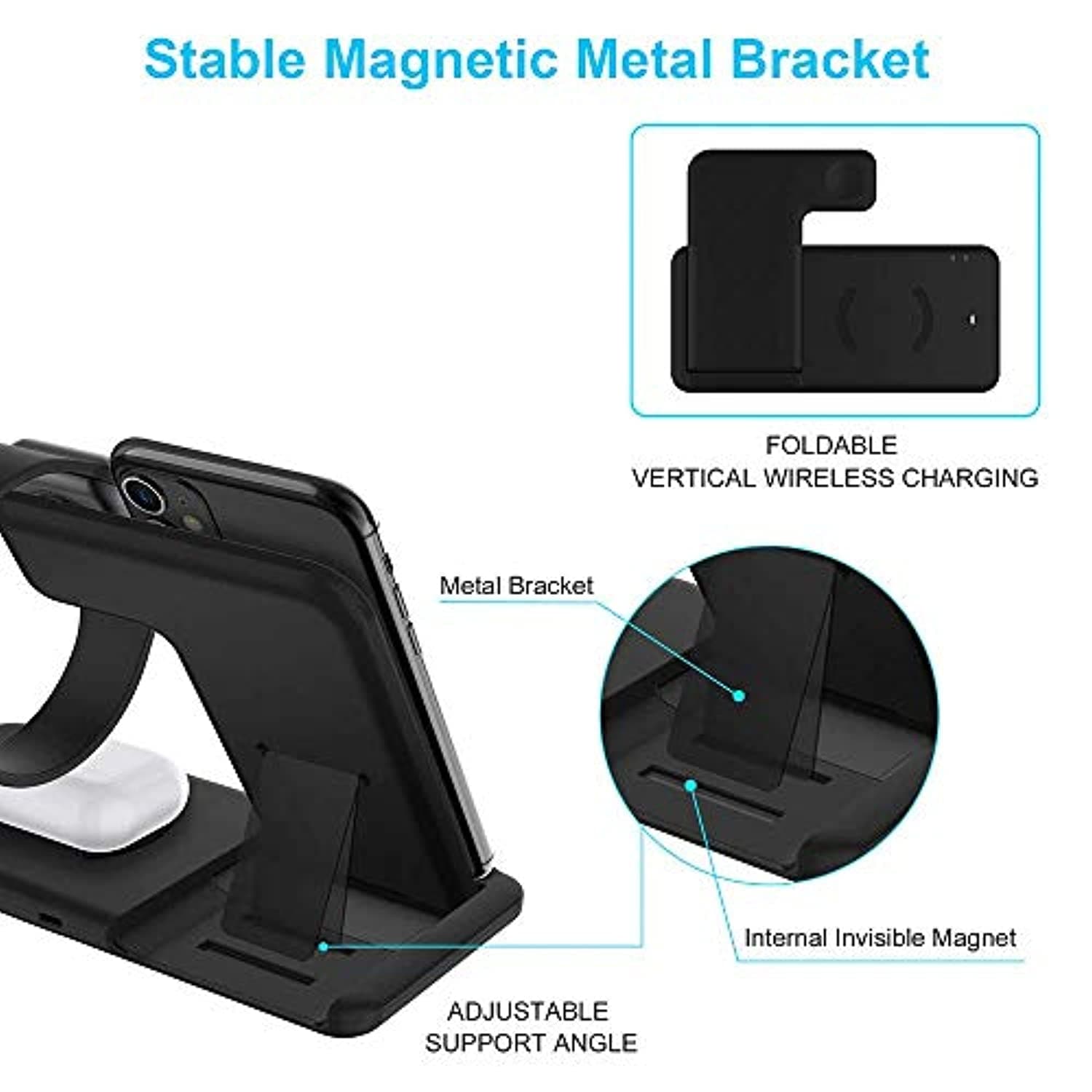 MADE WELL& MINIMALISTIC DESIGN Product folding size 6.8x6x1 inch,on your office desk,on your beside table in bedroom,it doesn't take up too much space.It's easy to carry, especially when you're traveling or on business, It's a perfect choice.Whether it's in your office or on your desk, a single charger station can solve the problem of charging multiple apple devices without more cables winding around your desk.