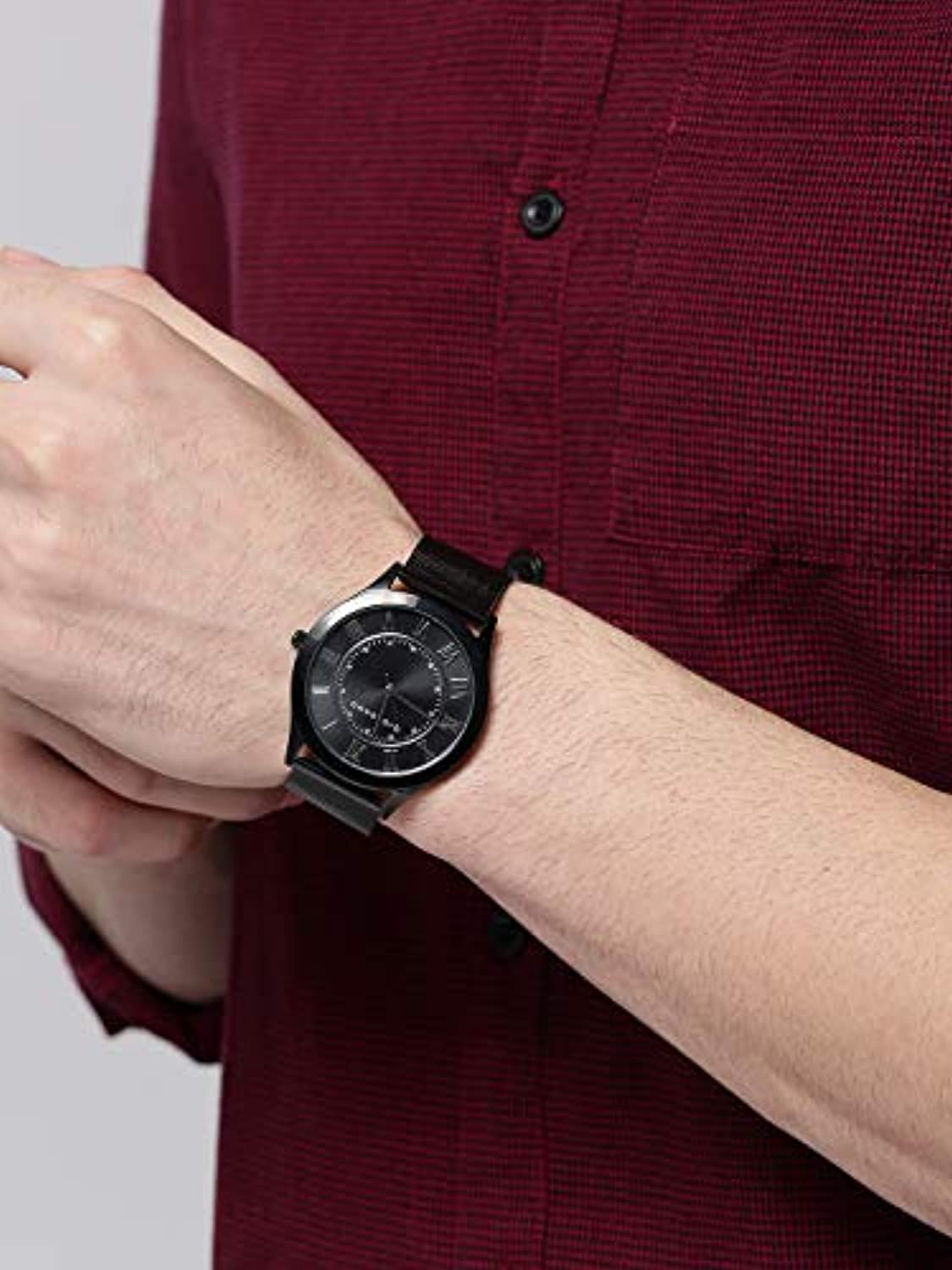 Dial Color : Black, Dial Shape : Round, Band Color : Black, Band Material : Metal