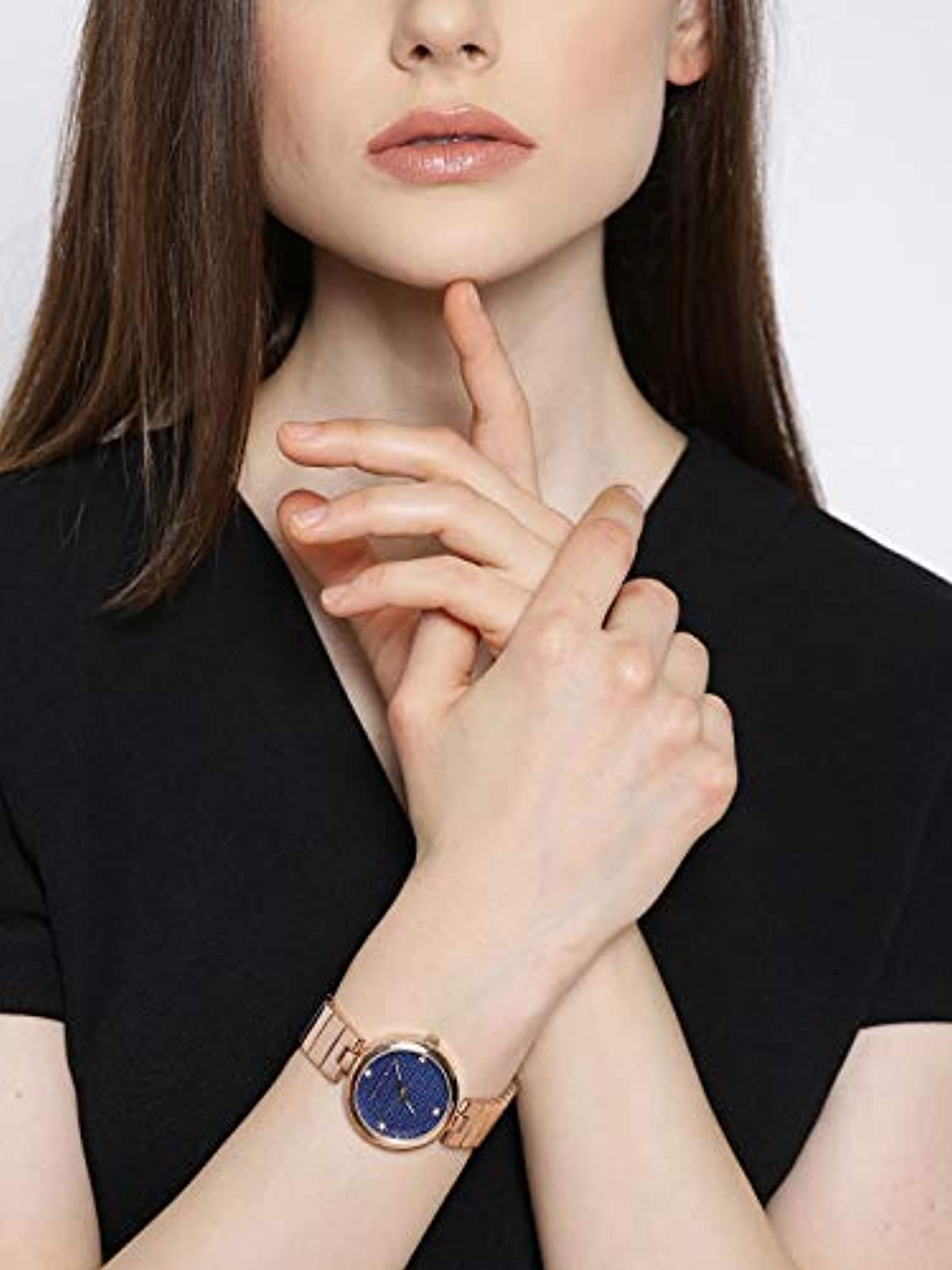 Dial Color: Blue, Dial Shape: Round, Band Color: Rose Gold, Band Material: Metal