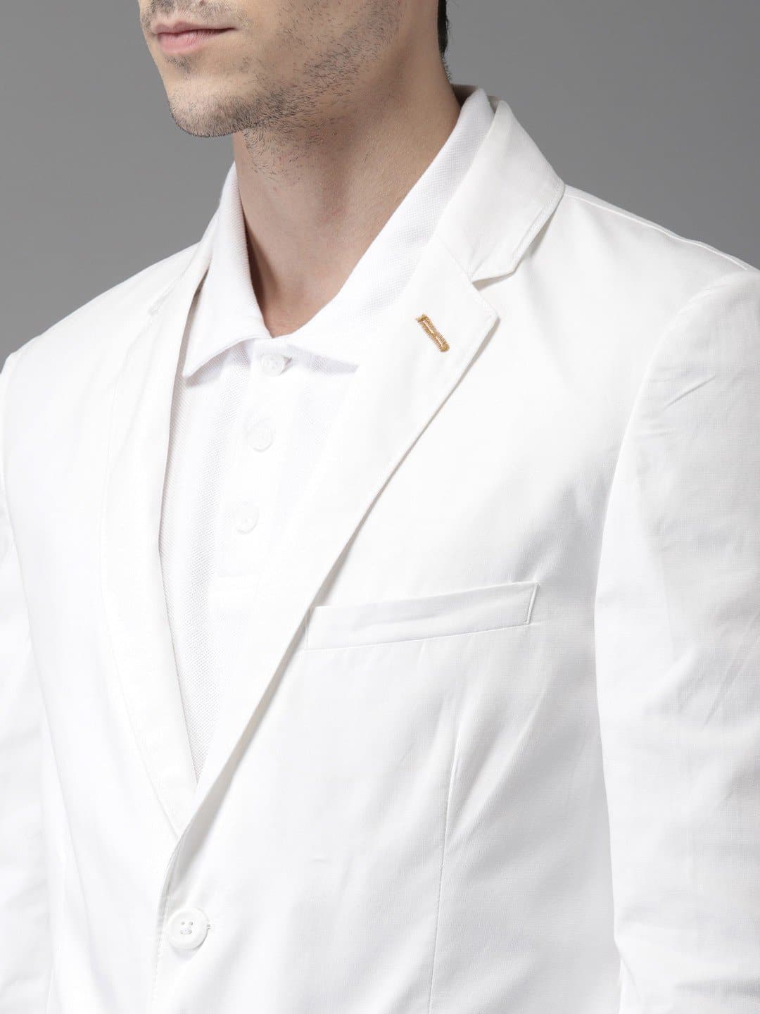 White Single Breasted Cotton Blazer