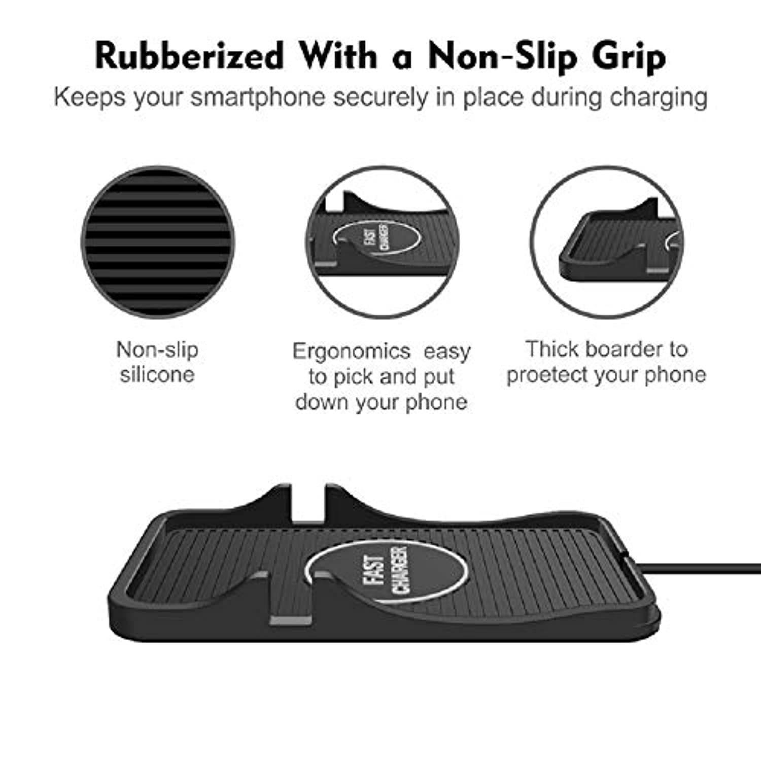 Wireless Car Mobile Charging Pad, QI Enabled 10W Quick Charging Dashboard Anti-Slip Mat for iPhone, Android & All QI Enabled Devices