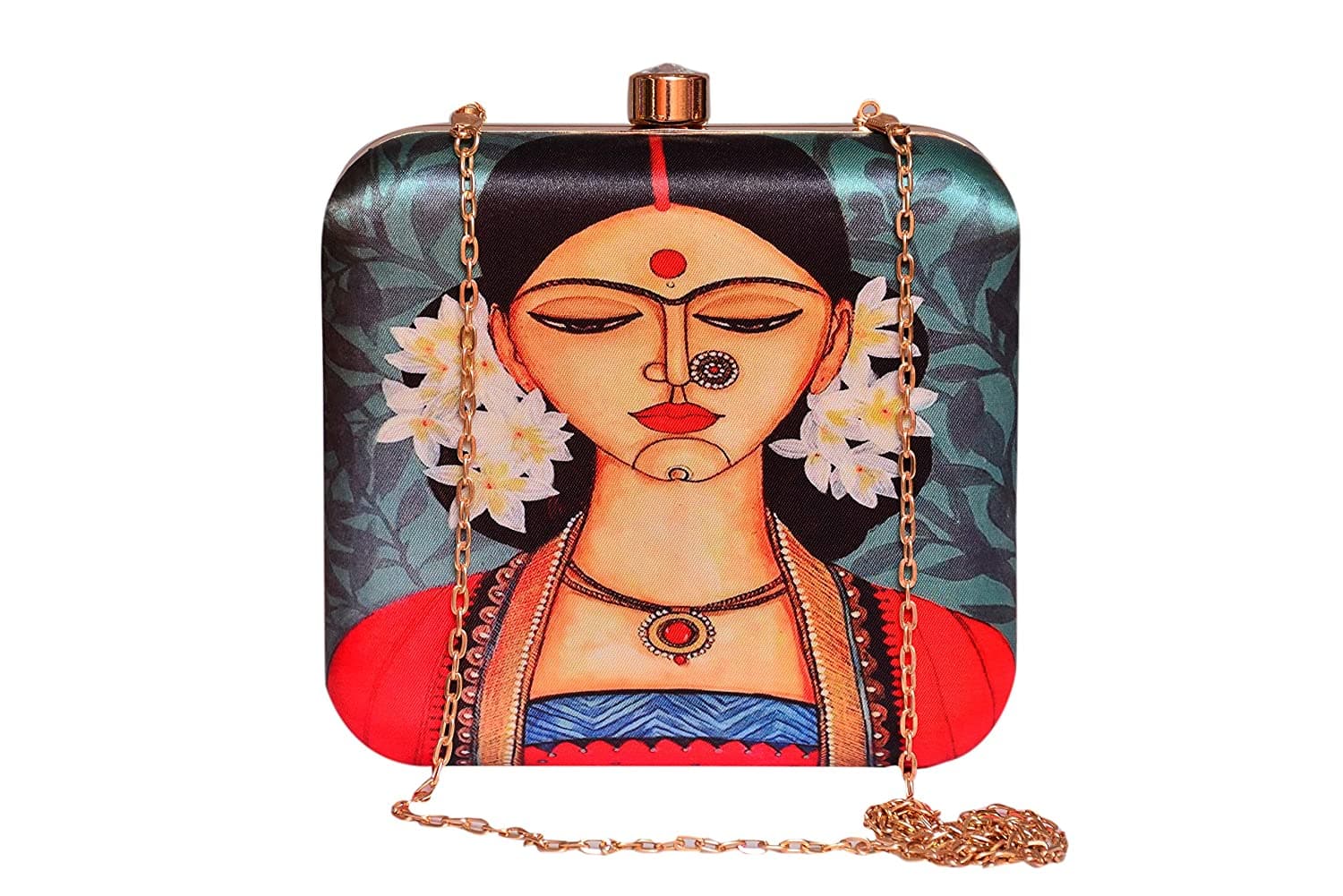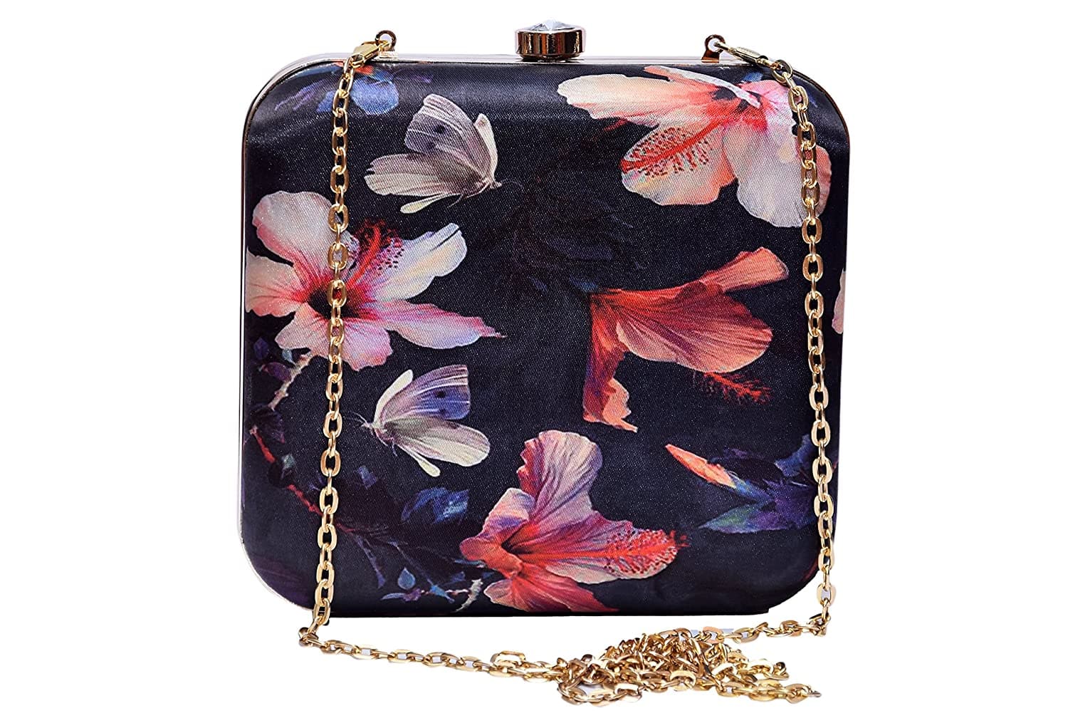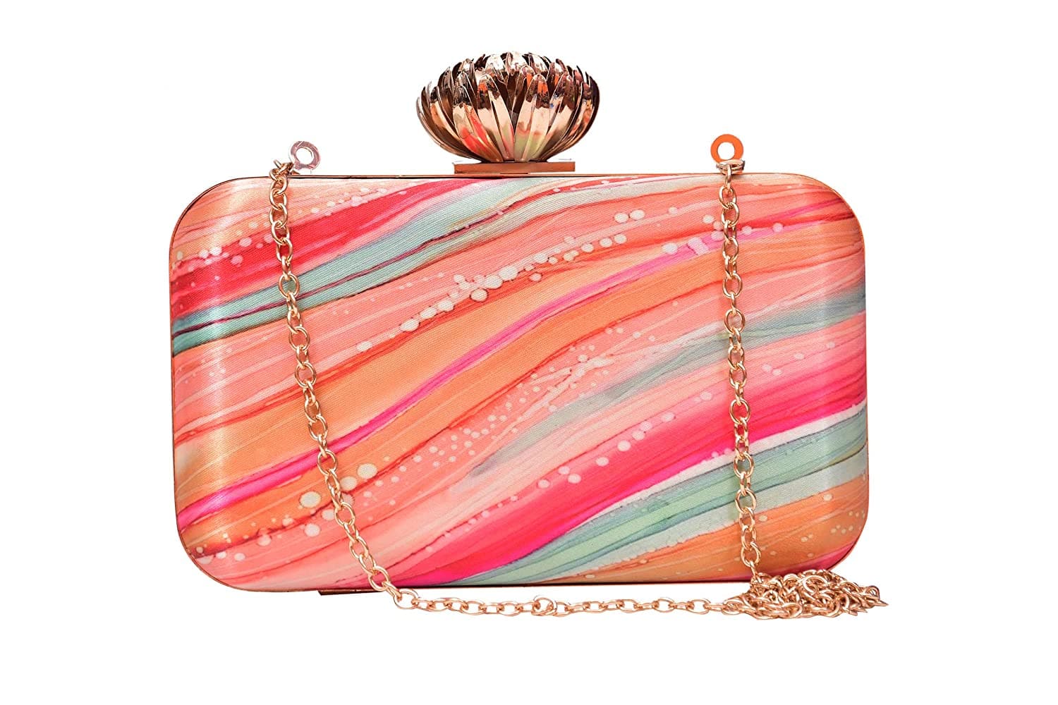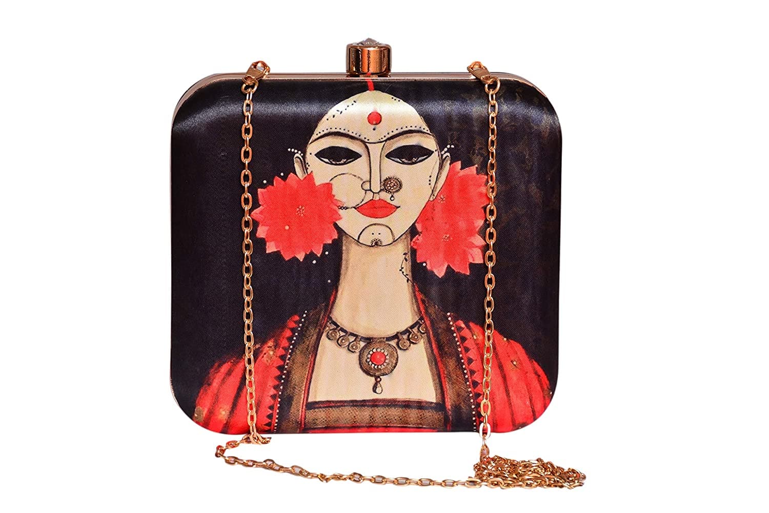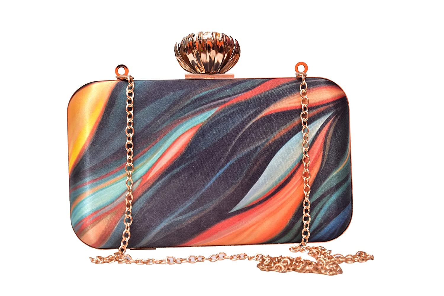 Women Party Wear Hand Box clutch Purse With Detachable Sling