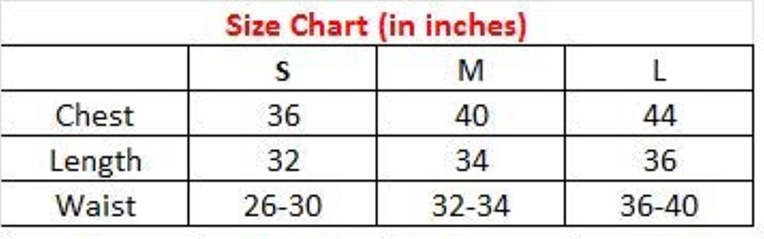 Size : SMALL - Length 32" Bust 36" MEDIUM - Length 34" Bust 40" LARGE - Length 36" Bust 44"