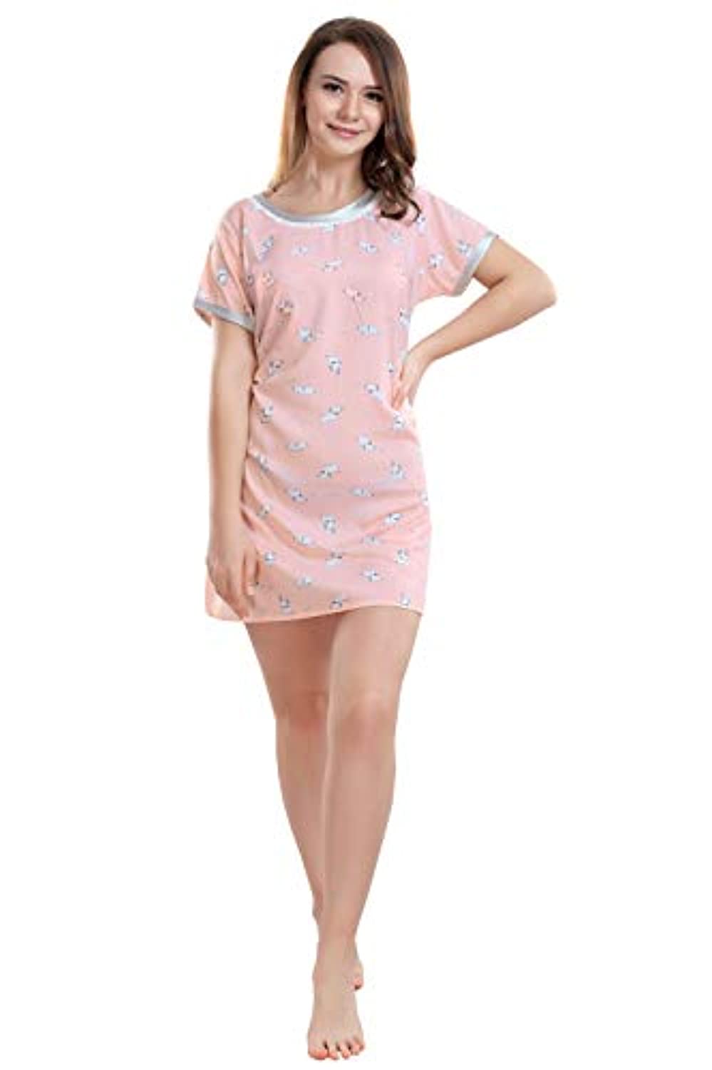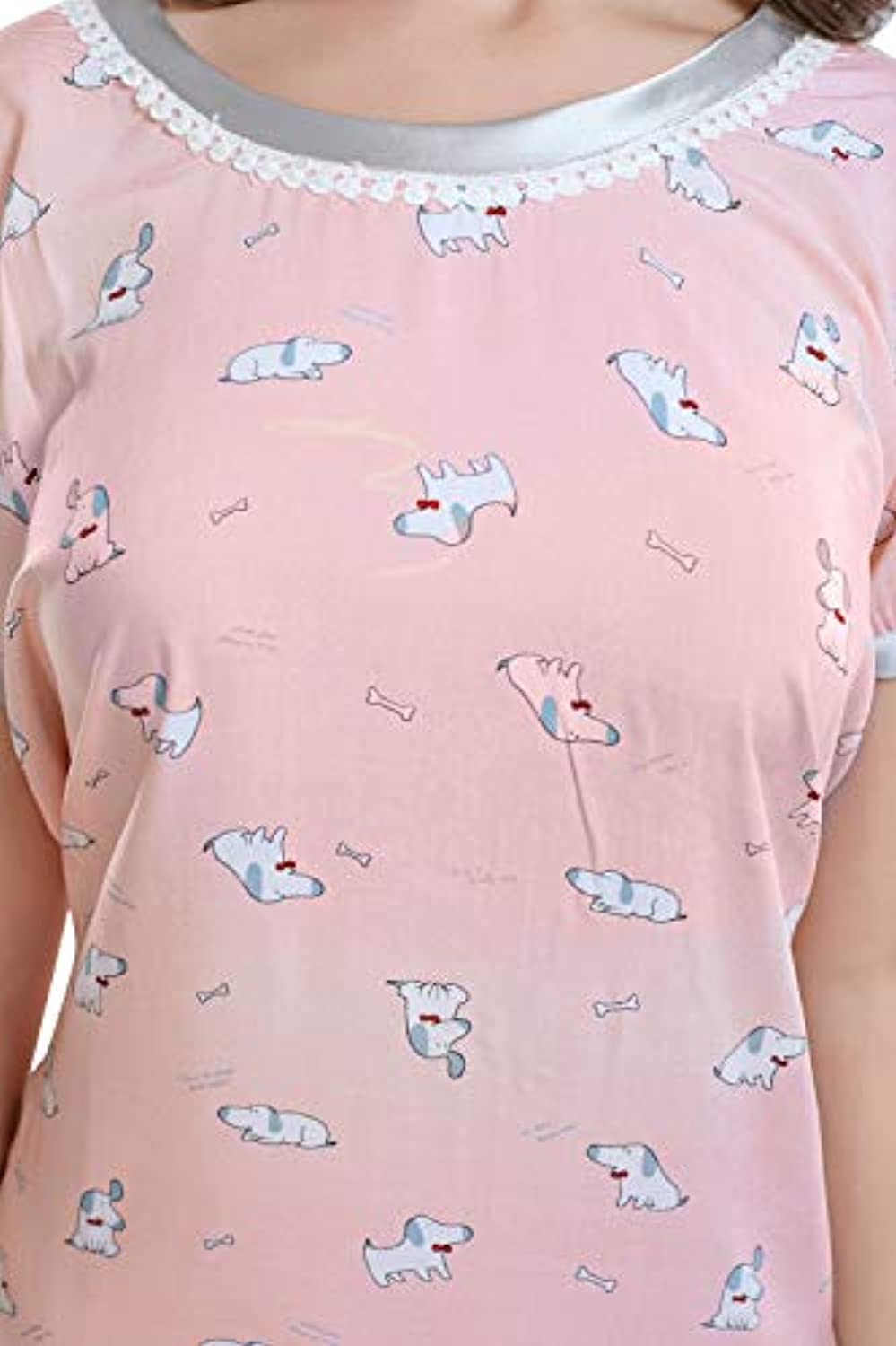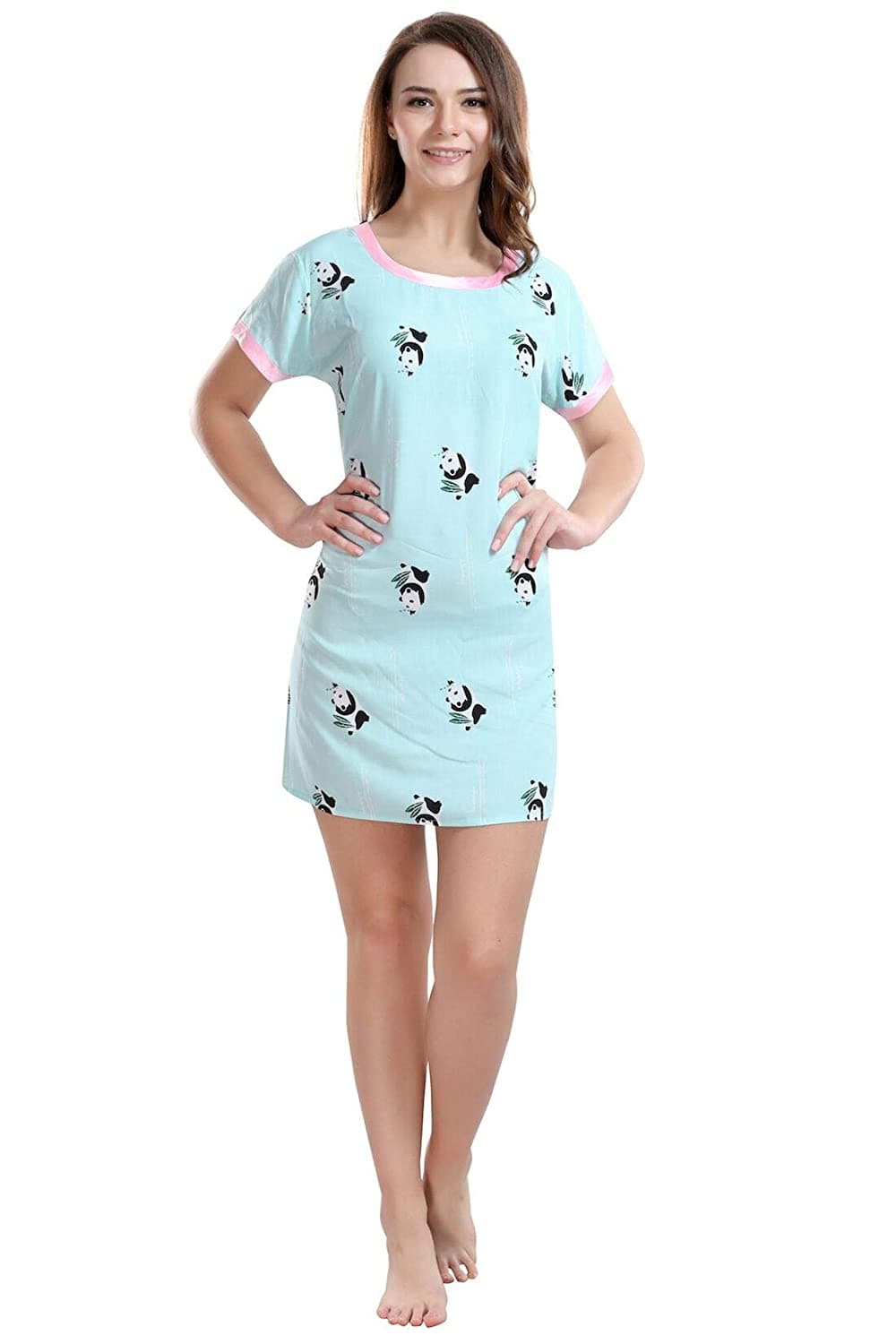 Cute Cartoon Printed Nighty for young girls and women. T-shirt style short nightdress with satin band collar. Soft Rayon Cotton Fabric - the softest on the skin