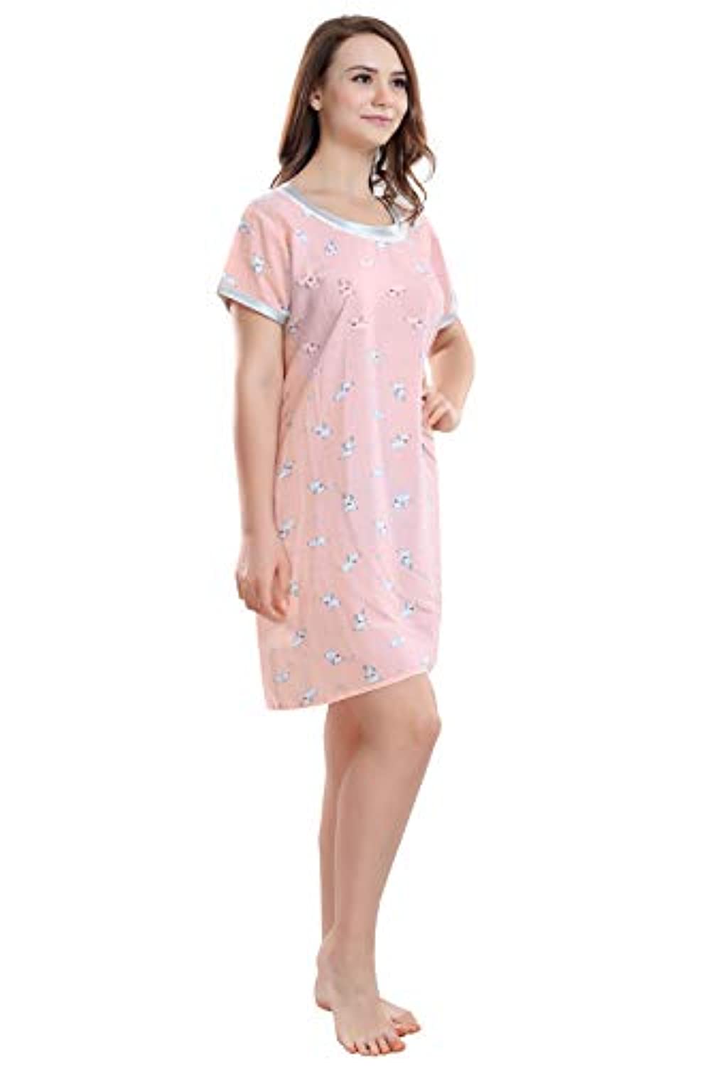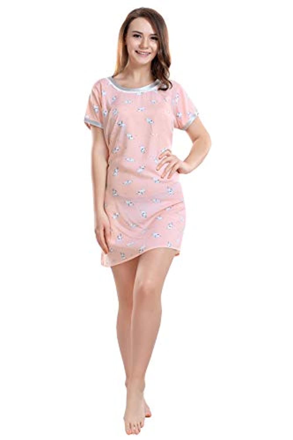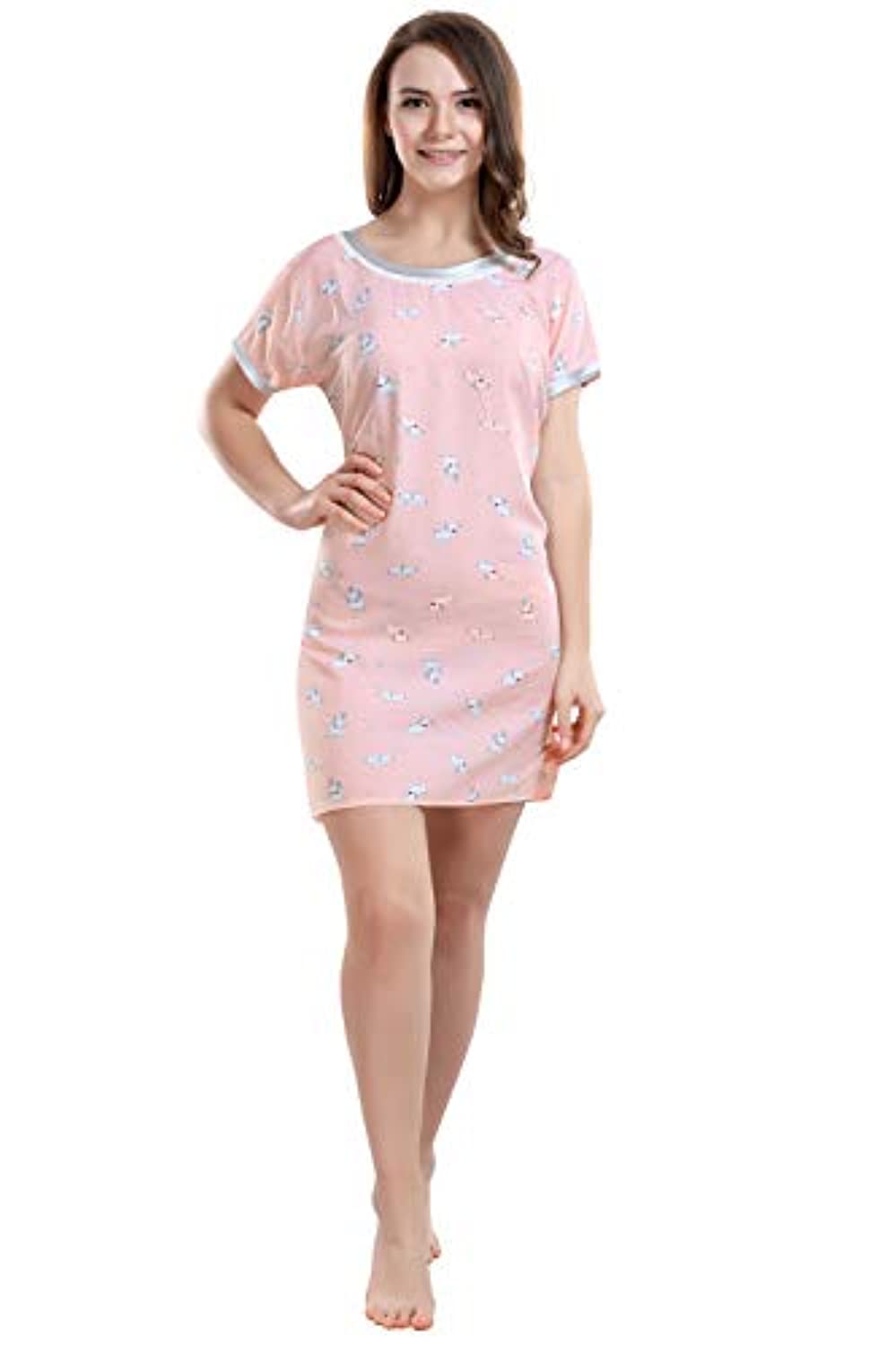 Cute Cartoon Printed Nighty for young girls and women. T-shirt style short nightdress with satin band collar. Soft Rayon Cotton Fabric - the softest on the skin