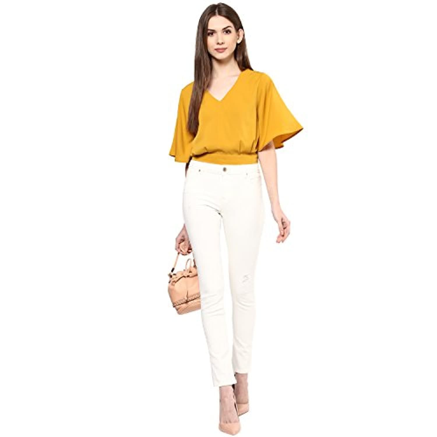 Material: Crepe Hand wash Body blouse Half sleeve V-neck